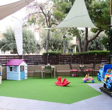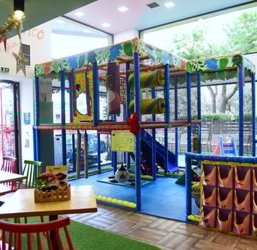 Επειδή είναι σημαντικό οι γονείς να βρίσκουν στιγμές χαλάρωσης μέσα στην ημέρα τους, ο χώρος μας προσφέρει ένα άνετο περιβάλλον όπου μπορείτε να απολαύσετε τον καφέ σας, να διαβάσετε ένα βιβλίο ή απλά να χαλαρώσετε, έχοντας πλήρη οπτική επαφή με τα παιδιά σας που παίζουν με ασφάλεια.