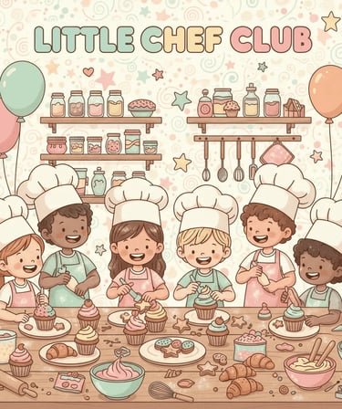 Μικροί σεφ, ετοιμαστείτε! Τα παιδιά μαθαίνουν να φτιάχνουν υπέροχα γλυκά, να διακοσμούν cupcakes και να δημιουργούν μαγικές συνταγές. Μια νόστιμη περιπέτεια γεμάτη χρώματα, γεύσεις και γλυκιά διασκέδαση!